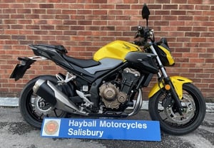 2023 Honda CB500F 47hp A2 licence legal, naked sports bike in dark matt grey with only 3223 miles. Showa upside-down gold forks, bronze engine casing, ABS, and HISS immobiliser as standard. R&G radiator guard and carbon design tank protection. Full service history, manual and two keys. A service will be completed before sale. Delivery quotes for mainland UK are available.